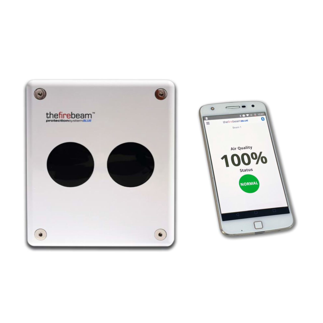 The fire beamBLUE® is de optische beam rookdetector van vandaag. Zichzelf automatisch uitlijnen bij inbedrijfstelling. Zichzelf automatisch richten bij een minder stabiele wand. En te verbinden met een APP op de mobiele telefoon