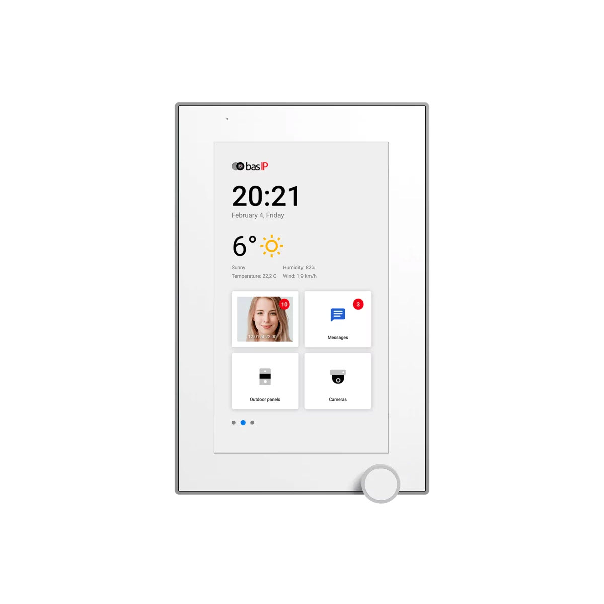 De BAS-IP AZ-07LF is een stijlvolle 7” IP video binnenmonitor met een IPS touchscreen en Android 10-besturingssysteem. De monitor biedt een breed scala aan functies, waaronder ondersteuning voor 32 IP-camera’s, bediening van liften, ontvangst van informatiemeldingen, en opslag van beeldmateriaal. Dankzij PoE en Wi-Fi is installatie flexibel, terwijl de horizontale en verticale montageopties de plaatsing eenvoudig maken. Geschikt voor integratie met de BAS-IP Link app en andere software via SIP en open API.