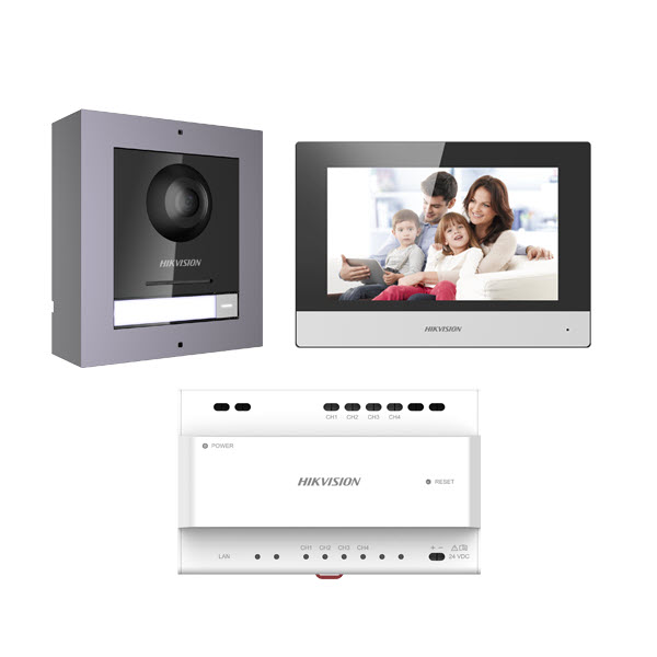 Hikvision Video intercom 2 Draads set DS-KIS702Y incl. Video Audio Distributor, DS-KD8003Y-IME2/Surface Buitenpost en DS-KH6320Y-WTE2 binnenpost