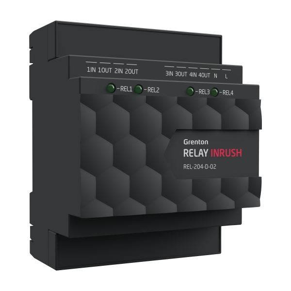 Grenton Relais module 4-kan. Inrush, TF-bus, DIN-rail
