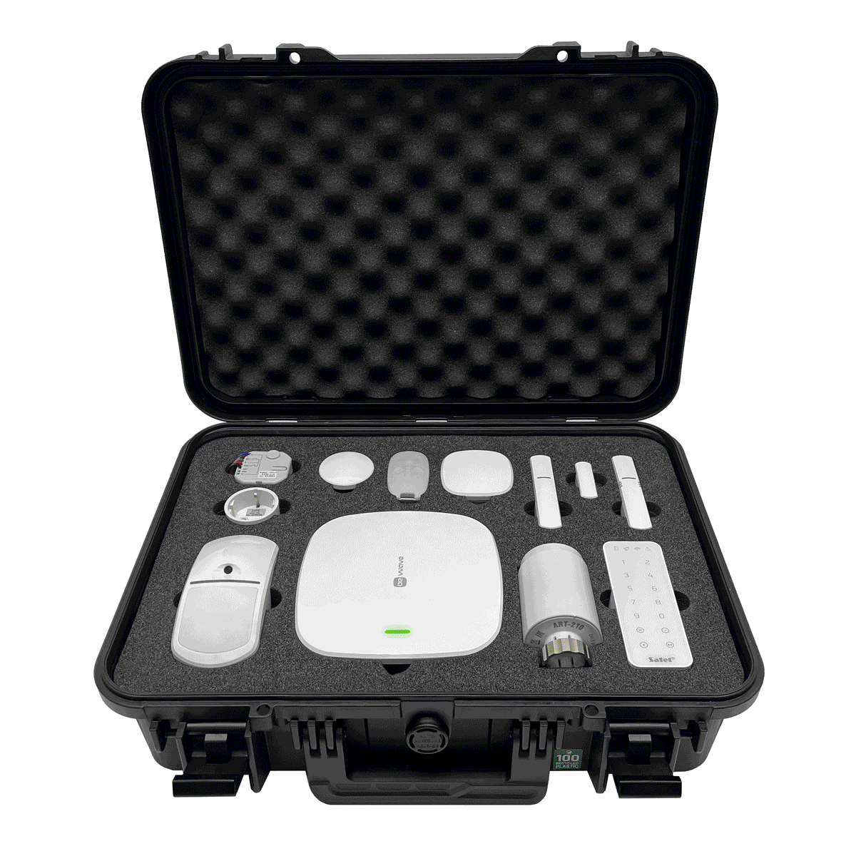 BE WAVE Demokoffer met Smart HUB, diverse bediening en detectie apparaten.